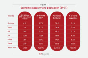 En 1941, le PIB mondial totalisait environ 4 500 à 5 000 milliards de dollars (en dollars internationaux de 1990). Ceux qui avaient la plus grande capacité de lutter contre le fascisme ont délibérément choisi de ne pas le faire.