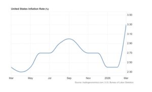 Les signes d’un retour de l’inflation sont déjà visibles dans la hausse des taux d’inflation enregistrée jusqu’à présent en 2026. Les dernières données de l’IPC américain pour mars montrent qu’une nouvelle flambée de l’inflation est en cours. L’inflation des prix à la consommation a atteint 3,3 % en mars, soit un bond de près d’un point de pourcentage par rapport à février. Et une nouvelle hausse vers 4 % ou plus est à prévoir cette année, à mesure que l’impact durable des blocages énergétiques et commerciaux se répercutera.