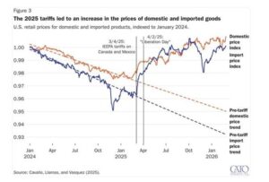 Les caprices tarifaires de Trump ne font qu’ajouter à la pression inflationniste. Sur la base des données de 2025–2026, la Réserve fédérale américaine estime que les droits de douane ont entraîné une «répercussion quasi totale sur les prix à la consommation, contribuant à hauteur d’environ 0,8 point de pourcentage à l’inflation PCE sous-jacente et expliquant l’inflation excédentaire des biens sous-jacents.»