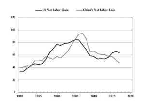 Minqi Li souligne toutefois que le PIB par habitant de la Chine est bien supérieur aux niveaux de revenu périphériques et que, en termes de flux internationaux de transfert de main-d’œuvre, sa relation avec près de la moitié de la population mondiale est exploiteuse, ce qui lui permet d’être considérée comme un pays semi-périphérique dans le système capitaliste mondial.